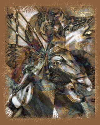 This very expressive peice is full of pent-up energy, ready to be released at any second. The 25-cent ride where the horse was photographed expresses the same engery. The defused glow of the white and rough pastel edges reminds us of the thrill of life's passage through time.